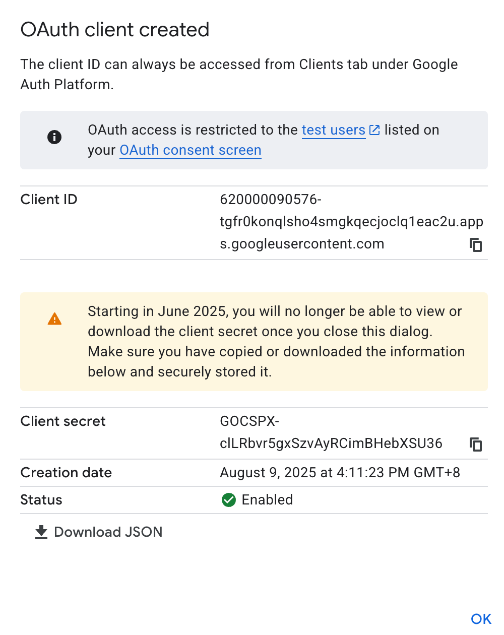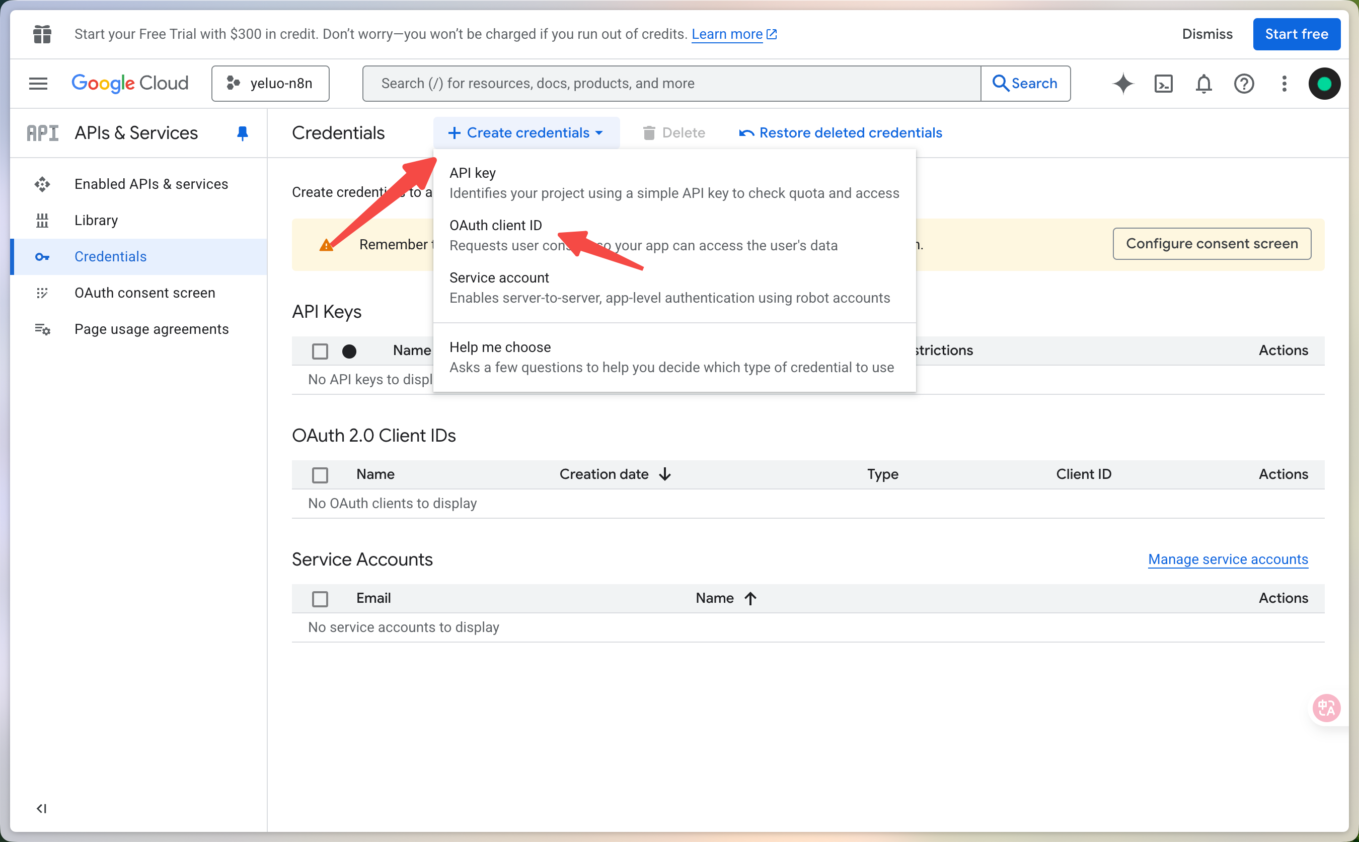 - Create OAuth credentials