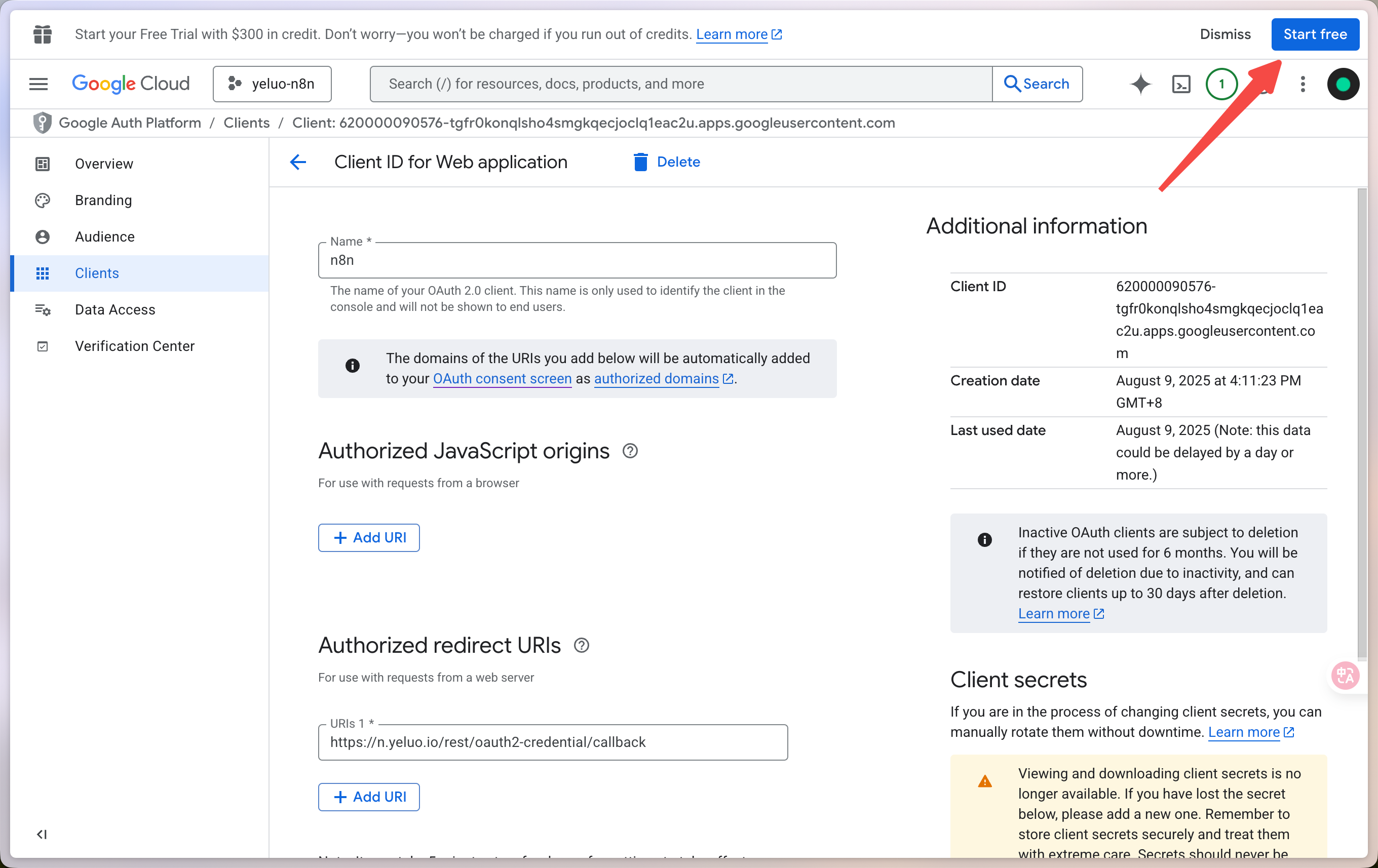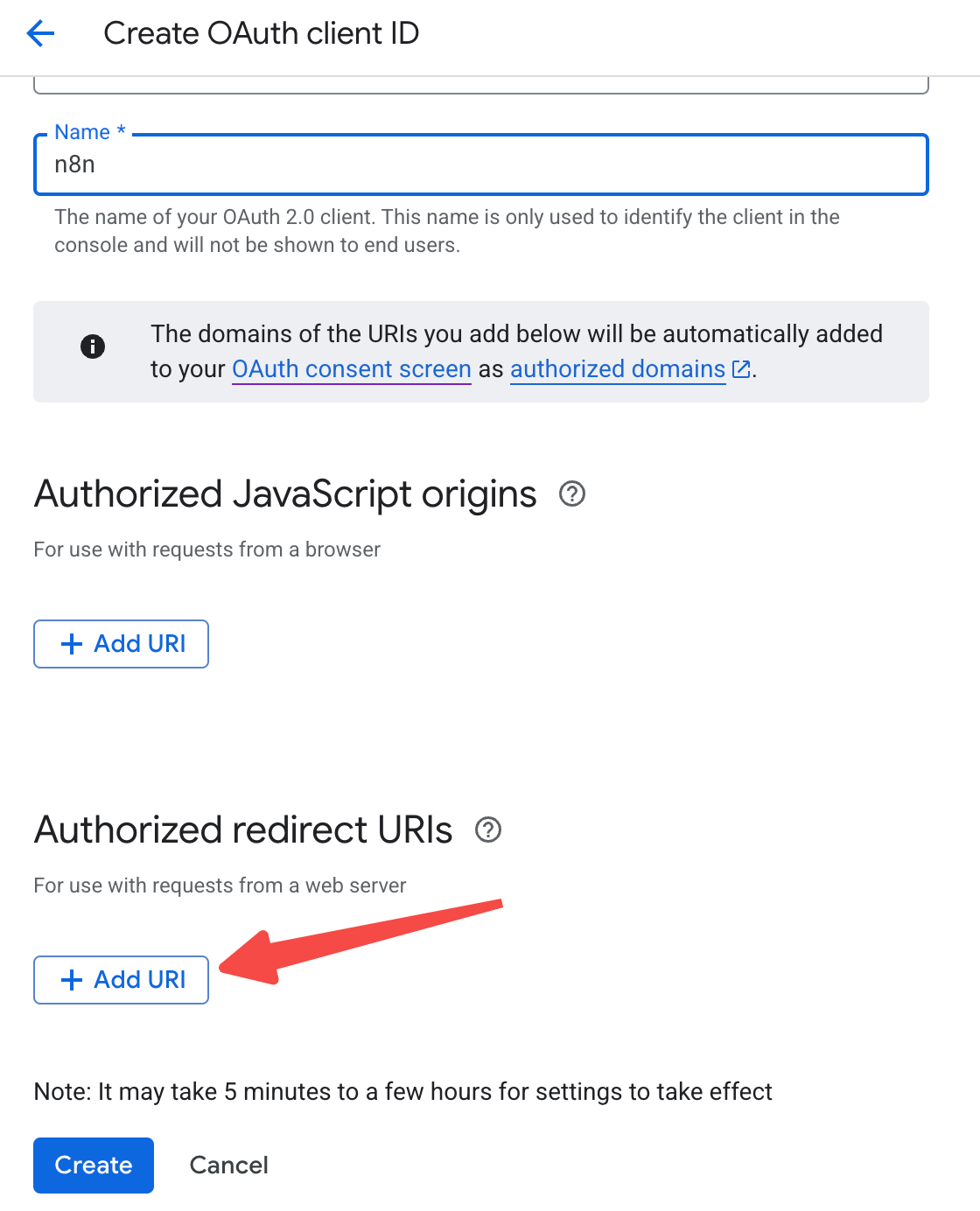 - Here the following “Authorized redirect URIs” are required to be filled in, this URI we need to get from our self deployed n8n backend.