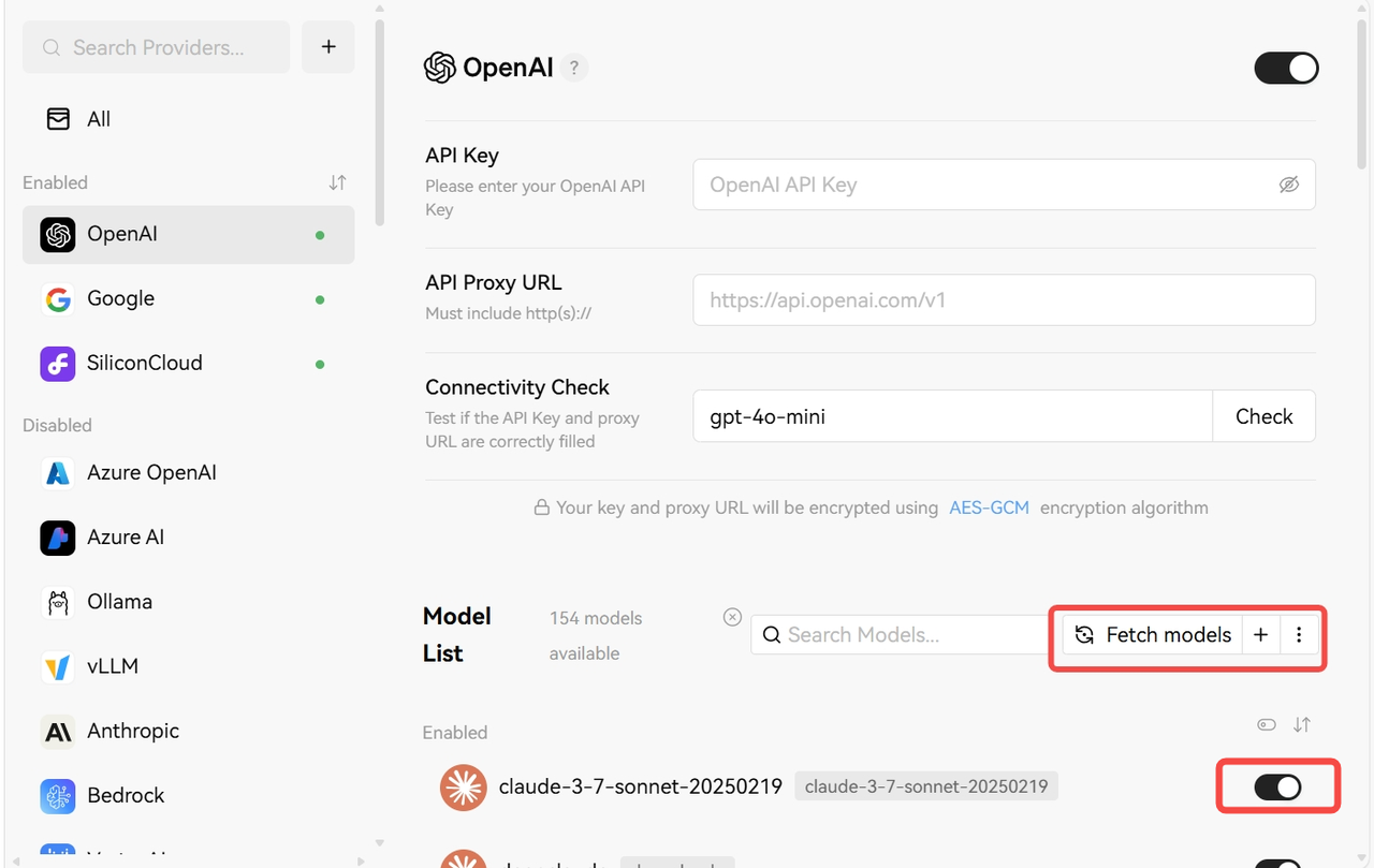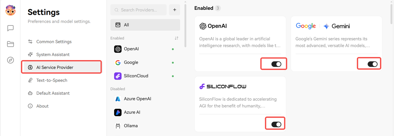 2.Click “AI Service Provider”, open the available AI button, and then click AI on this page.