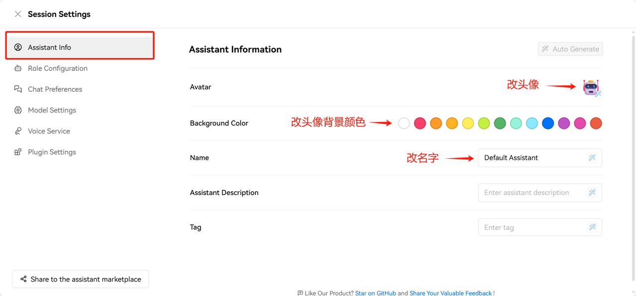 In addition, a column of information under session setting can be set according to your own needs, such as: set the name of the agent, avatar and other content.