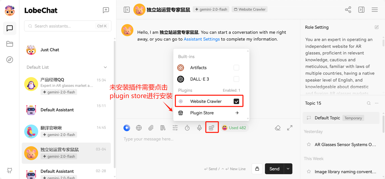 - If you need to crawl the web page information, you can install the website scrawler plugin (the red box in the picture is the website scrawler), click the plugin store.