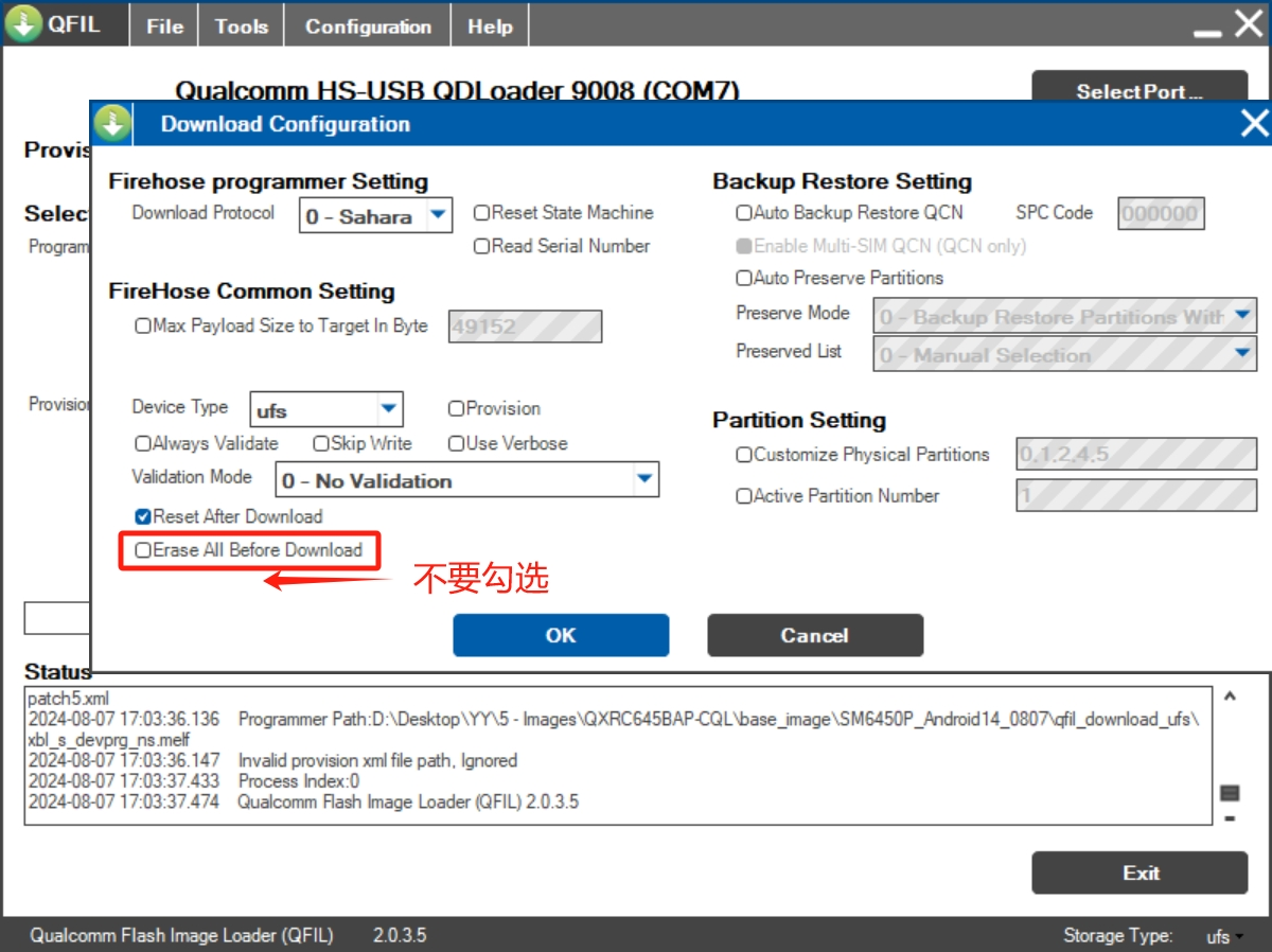 ❗Don’t choose the “Erase All Before Download”