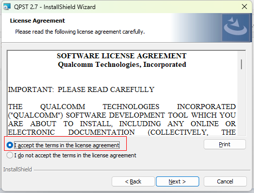 Unzip the compressed package and run the QPST.2.7.496.1.exe file within it. Just continue with the default settings during installation.