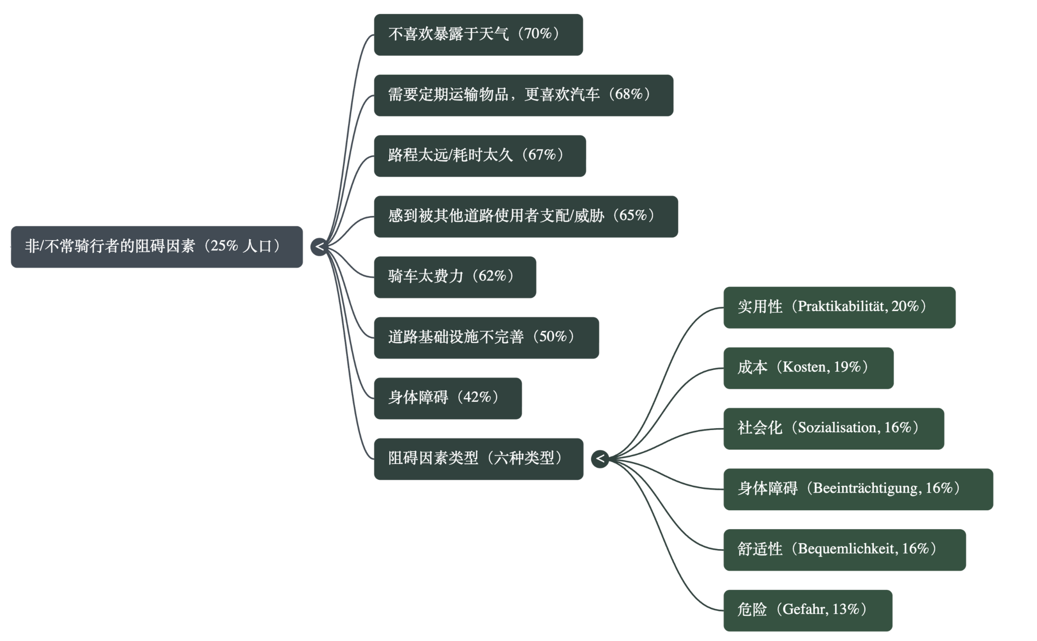 • 停车和防盗是通勤障碍: 35% 的受访者反对在火车站/公交站停车的主要原因是**“缺乏安全的停车设施”(盗窃、破坏)**。