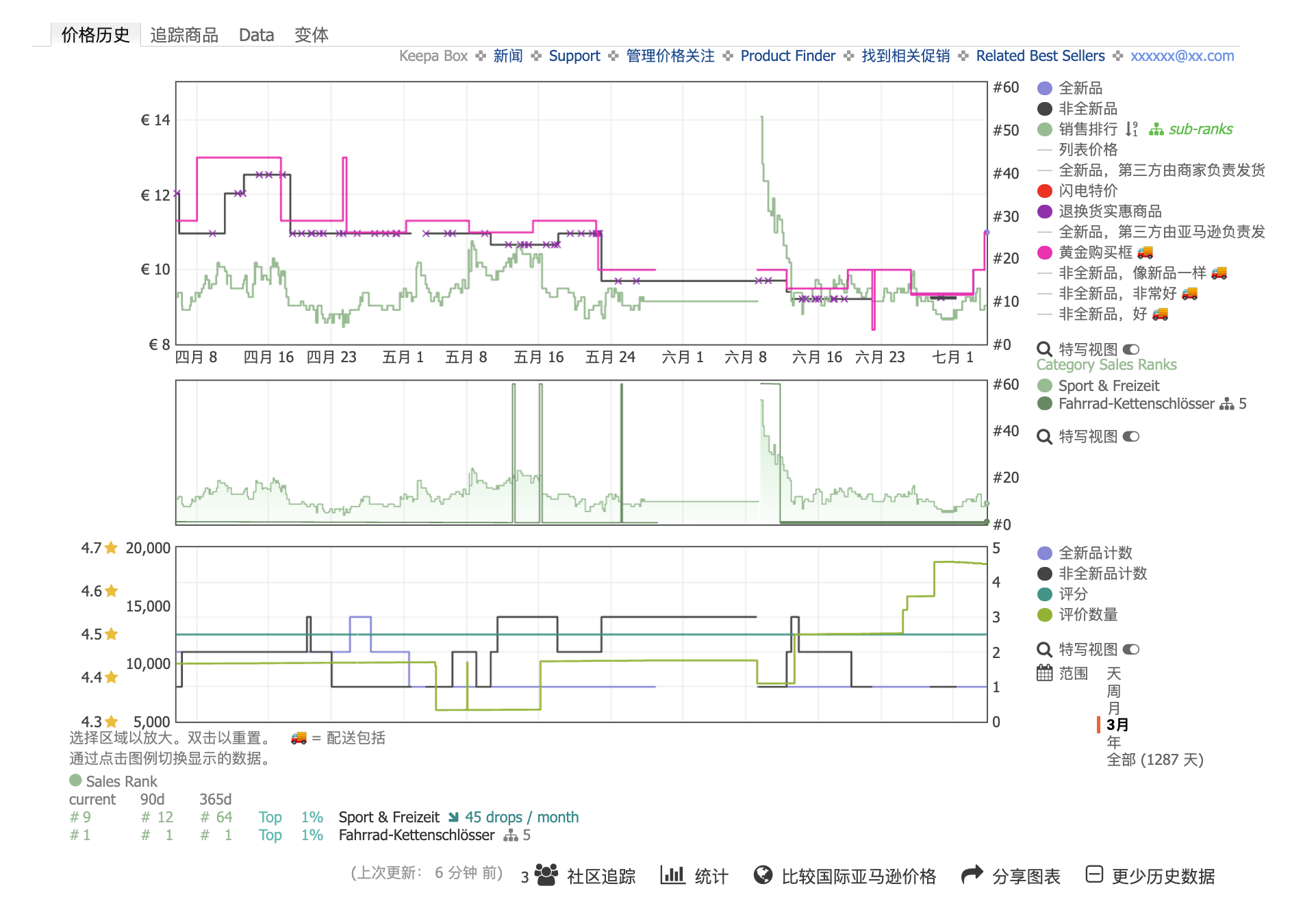 4,620。产品的定价波动在16.99-21.99,目前定价为21.99,这个价格的变动是跟着亚马逊官方走的。如果亚马逊自营在卖这款产品,其他都会跟着亚马逊自营的价格走,但是亚马逊自营的产品价格都会较低,接近于成本价。